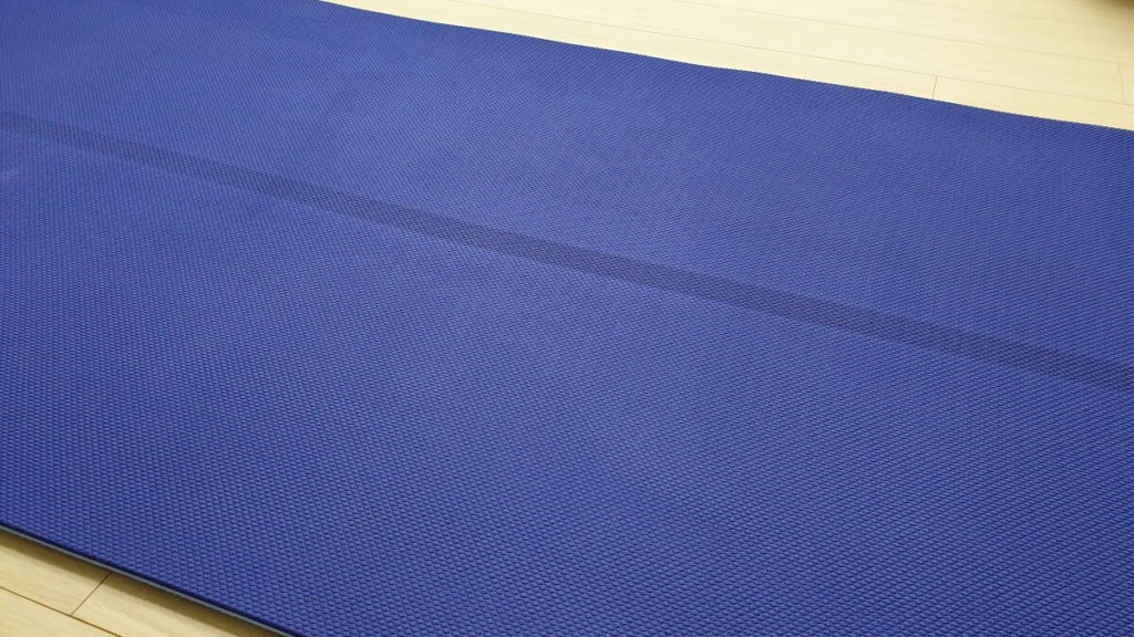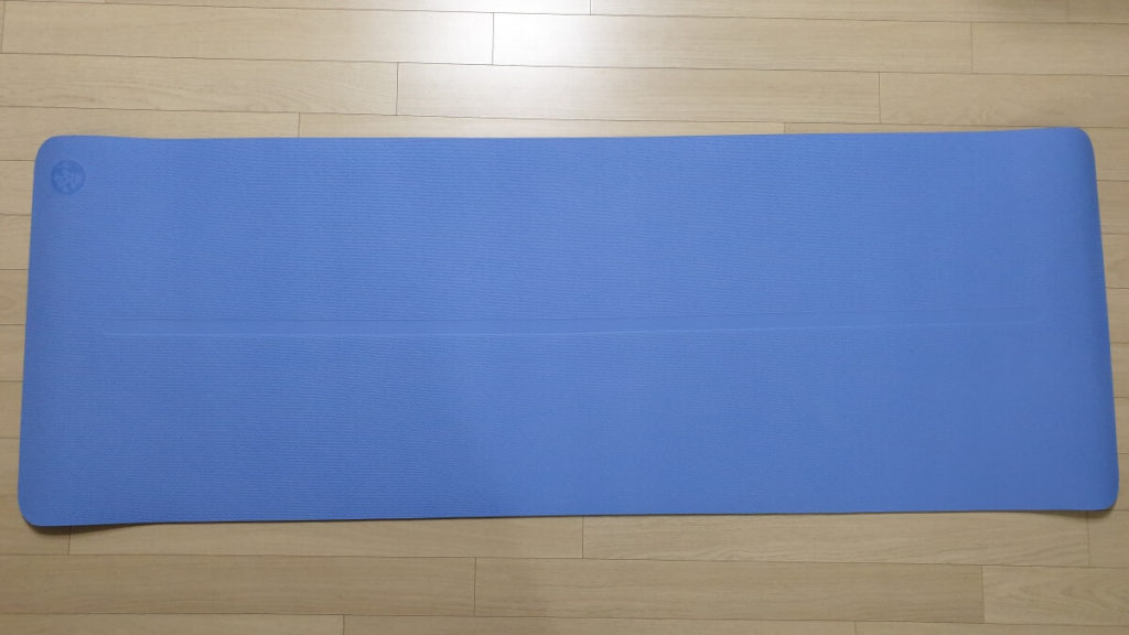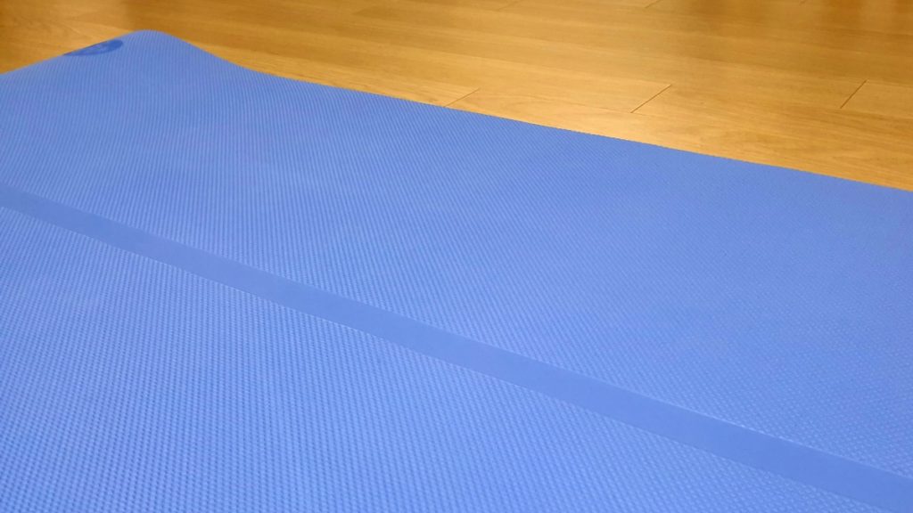 이 중심선은 실제로 요가 입문자인 저에게는 자세를 잡는데 많은 도움이 되고 있습니다. 이 제품의 경우 양면으로 사용이 가능한데, 제품을 뒤집어 보면 조금 더 진한색의 매트가 나오게 됩니다.