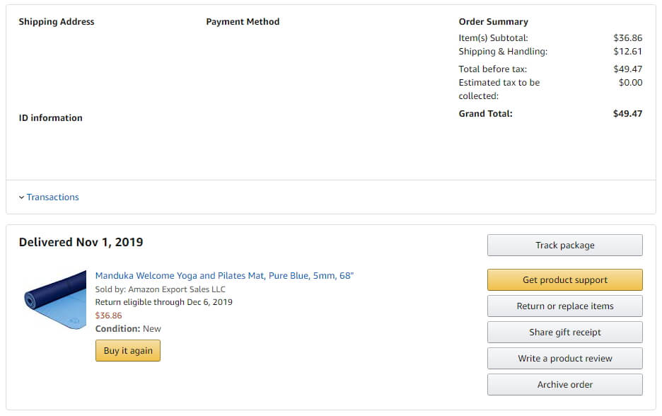 아마존에서는 10월 27일에 구매하고, 한국에는 11월1일에 배송되었습니다.